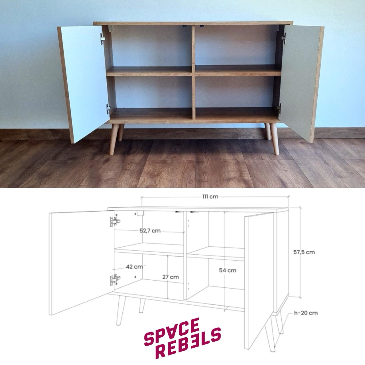 Designed for effective organization, this sideboard offers functional storage space hidden behind two doors, making it an ideal solution for storing books, documents, textiles, or everyday essentials. It performs excellently as a standalone storage piece in the bedroom, hallway, or office, helping you maintain a clutter-free environment while adding a distinctive decorative element to your home.